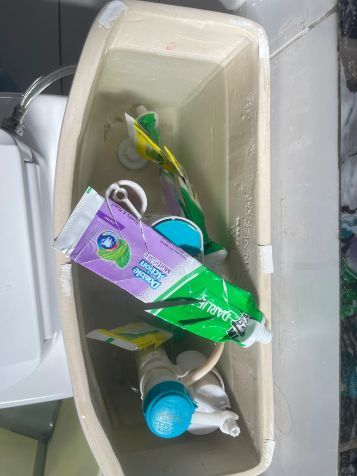 马桶水箱也是很多人在日常生活中,根本不会想到的清洁卫生难点,那如何才能保证马桶水箱的卫生呢?方法非常的简单,我们可以把每次用剩下的牙膏裁剪出缺口。