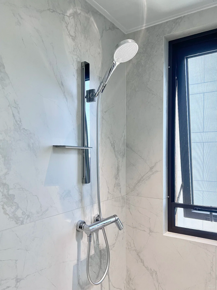 每次洗澡之后直接用刮板把墙面和地面的水渍刮干净,卫生间即刻变得干干爽爽。