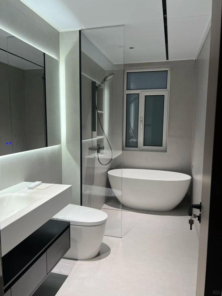 毕竟玻璃隔断作为卫生间干湿分离隔断,在装修界那是亘古不变的传统设计。